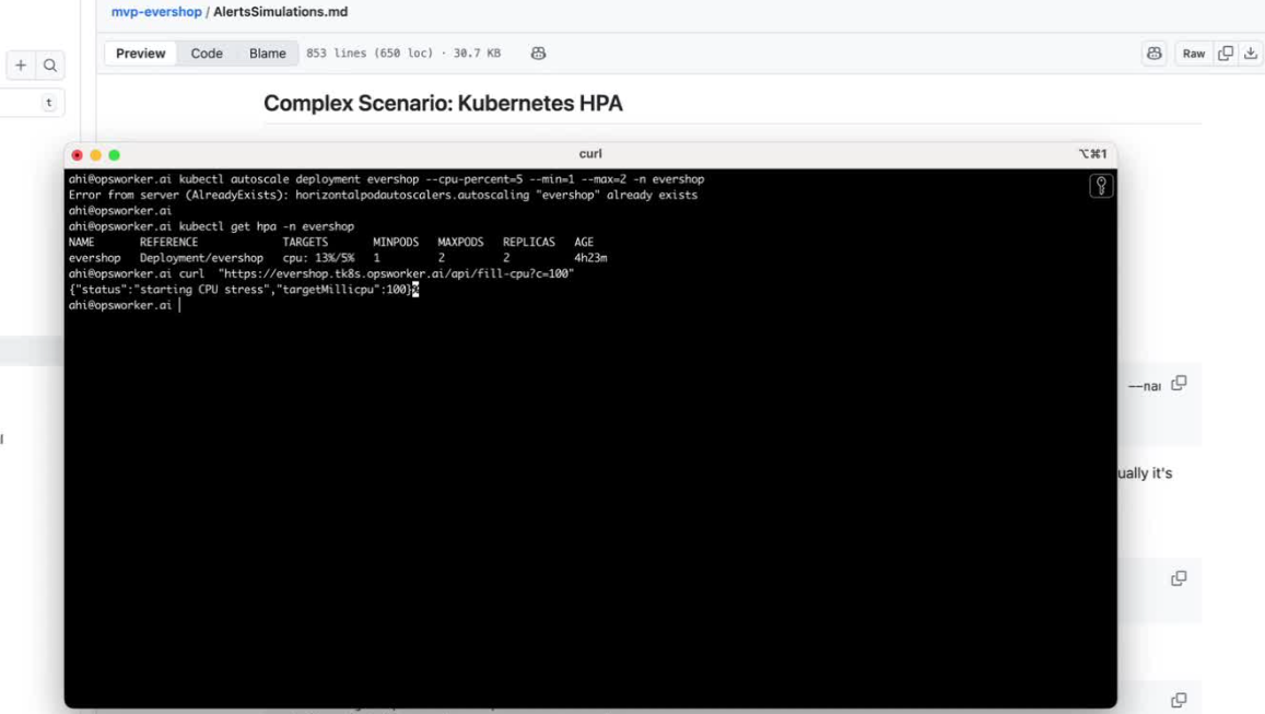 The goal: show how OpsWorker acts as an AI SRE Agent, diagnosing real-world failures that engineers deal with every day. No synthetic examples, no artificial logs — just two classic failure modes that happen constantly in cloud-native systems.